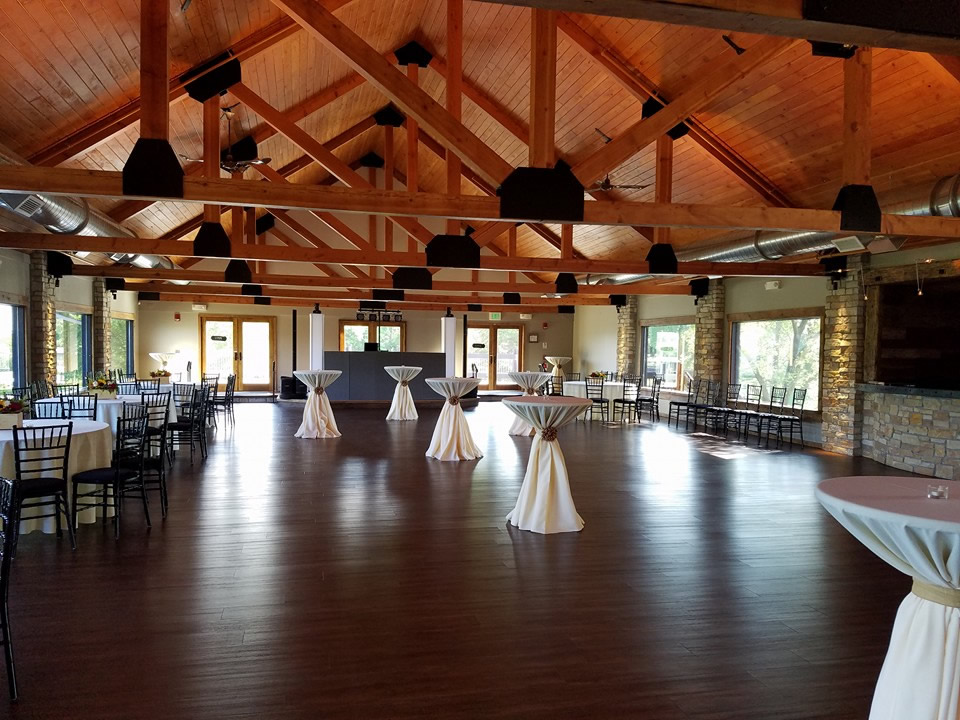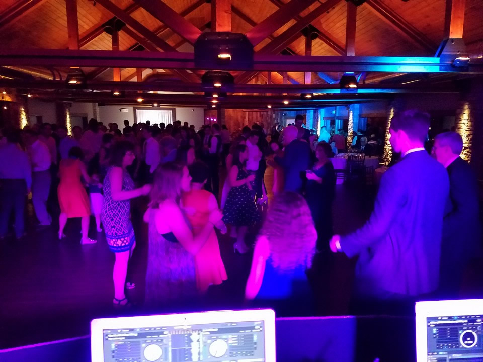 Katie & Eddie chose Fishermen's Inn because of its magnificent scenic landscape and rustic (and gorgeously updated) charm. Many of the extra decorations were even designed by Katie! We worked closely with Katie (who lived out of state) through weekly teleconferences to create a timeline that enabled a smooth flow between the outdoor ceremony, to the patio cocktail hour, to the dining room for dinner and toasts, to the loft for dancing and our dazzling photo booth, and then back to outdoors for a sparkler sendoff! We provided the ceremony sound, music for cocktails, music and microphones for the dining room, and the main system for dancing. We also provided the DJ/emcee/event planner, and our open air photobooth with silver drape backdrop and cowboy western props!